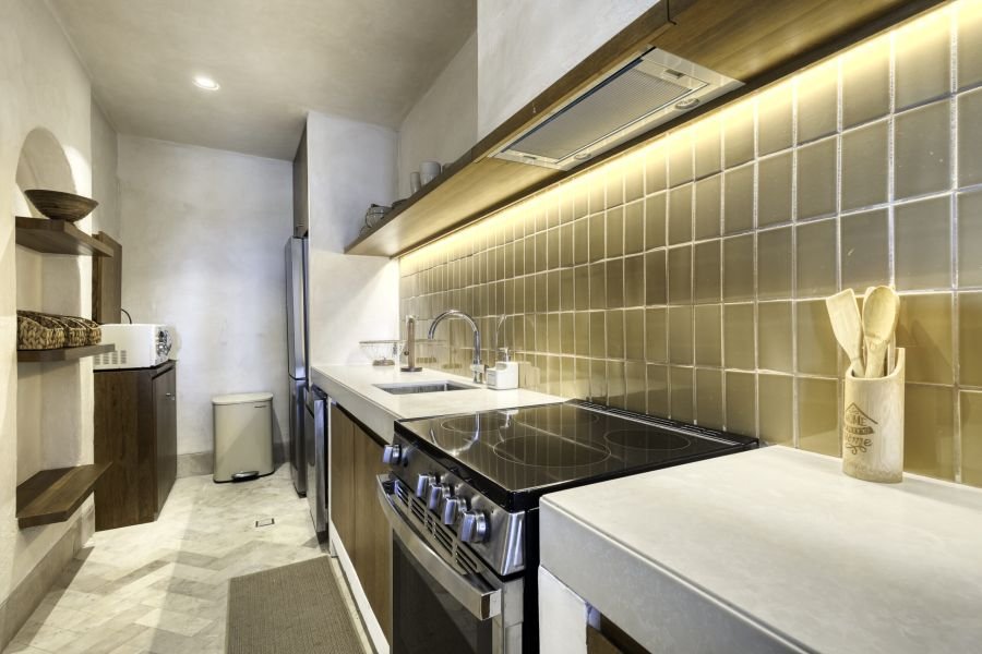 This thoughtfully designed Penthouse features three spacious bedrooms with comfortable beds and stylish décor, as well as three full bathrooms and one half bathroom, providing convenience and privacy for all guests. The fully equipped kitchen includes modern appliances, while the stylish living room offers a cozy space to relax with a TV. A private pool and terrace provide the perfect setting to enjoy morning coffee or sunset views. With a capacity for up to six guests, it’s an excellent choice for couples, families, or friends. Enjoy a unique contemporary design with high-end finishes and a welcoming ambiance.